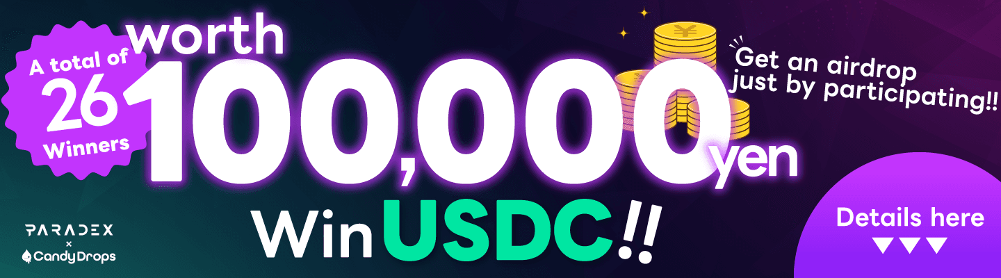 🎉 Paradex × CandyDrops Campaign Launch! Win a total of 100,000 JPY worth of USDC shared among 26 winners!!