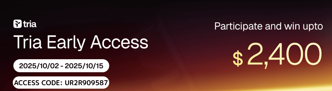 - 【Even More Chances】 Purchase a Tria Card to increase your winning odds by up to 5x! Plus, an extra chance for card purchasers to win a large amount of $USDT.